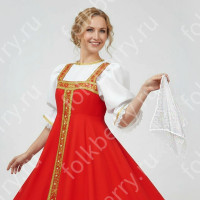 Фасон рубахи удобен и  не ограничивает движения. Жесткий воротник, пуговицы отсутствуют, рукав втачной, немного спущенный, свободный, длина рукава примерно до локтя. По бокам внизу разрезы. К рубахе прилагается пояс. Декор на груди выполнен из жаккардовой тесьмы в натуральном цвете. Для подбора правильного размера, в заказе, пожалуйста, пишите рост, обхват груди и талии.