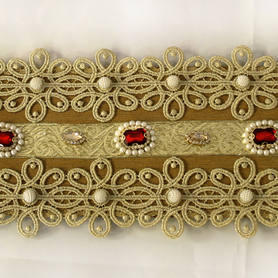 Кокошник Ася - лаконичный по форме, из декора использована только тесьма, но очень выразительная и красочная.  Высота кокошника 11 см.  Кокошник отлично подойдет к наряду из хлопка, льна, атласа.