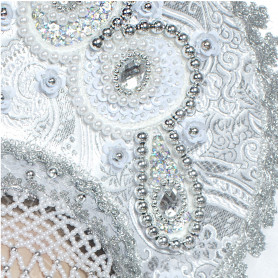 Форма кокошника - лаконичная, четкая, ясная. Декор напоминает плавные изгибы русских рек, цветы и стебли растений.