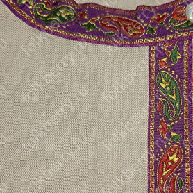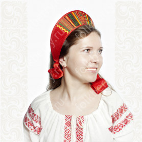 Кокошник выполнен из бархата (или атласа, на Ваш выбор), бусин белого и золотого цвета, пайеток, жаккардовой тесьмы, контрастной по цвету к фону.