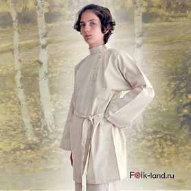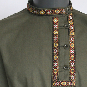 Хлопковую мужскую косоворотку необходимо стирать в деликатном режиме или руками в теплой воде.