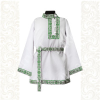 Косоворотка Русич выполнена из хлопка или габардина (полиэстер 100%, одежная ткань) на выбор покупателя)и декорирована жаккардовой тесьмой. Косоворотка в традиционном стиле, с поясом-кушаком, декор по горловине, груди, запястьям, талии, бедрам ( славяне наносили декор в тех местах, где бьется пульс). В декоре "зашиты" обережные символы здоровья, силы, удачи, процветания, принятые в Древней Руси. Декоративная тесьма смотрится очень эффектно, т. к. имеет четкий рисунок, напоминающий вышивку крестом.