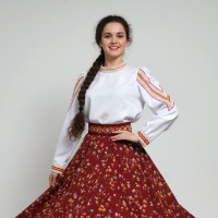 Платье «Дмитра» - современное прочтение славянских традиций. Платье четкого силуэта, чуть ниже колена, чистого яркого цвета. Платье отрезное по талии, длинный рукав-реглан, регулируемая горловина, юбка "почти солнце", с поясом. Для платья подобран эффектный декор -  солярные славянские знаки.  Платье сшито из габардина, ткани, которая не блестит и не мнется, всегда выглядит аккуратно, ярко, празднично, романтично.