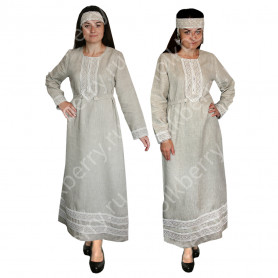 Выполненное из натурального мягкого льна серебристого цвета платье «Скандинавия» декорировано натуральными кружевами и вышивкой ручной работы (небольшая бабочка, закреплена на английской булавке).