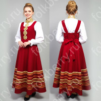 Декор платья - жаккардовая тесьма со славянскими символами. Талия немного завышена, пояс в комплекте.