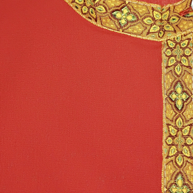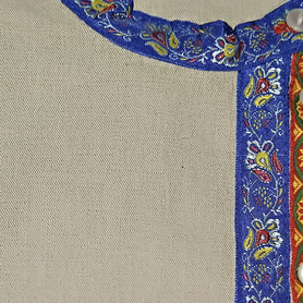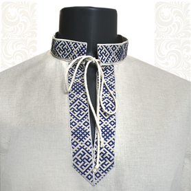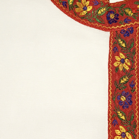 Материалы: лен белый, жаккардовая тесьма с обережными символами