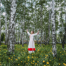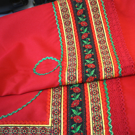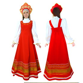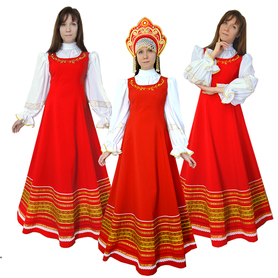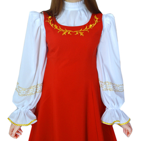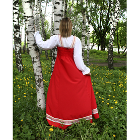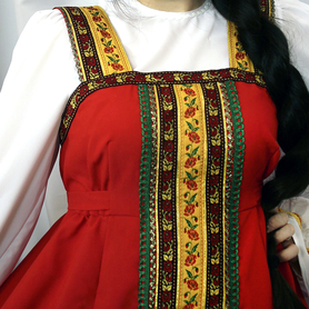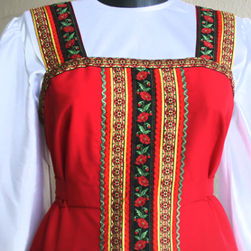 Нарядный комплект, выполненный в традиционном русском стиле, состоит из сарафана и блузы. Отлично подойдет для участия в концертах, для театральных выступлений, для славянских праздников и мероприятий.