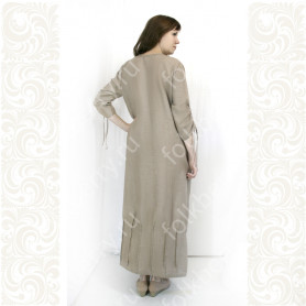 Сарафан длинный, сшит из яркого габардина, украшен тесьмой жаккард и «вьюнок», которая эффектно сочетается с цветом ткани.