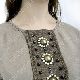 Дополнив костюм «Народный» головным убором в русском стиле (очелье, кокошник или сорока), надев на шею красные, яркие бусы можно сделать образ более завершенным.